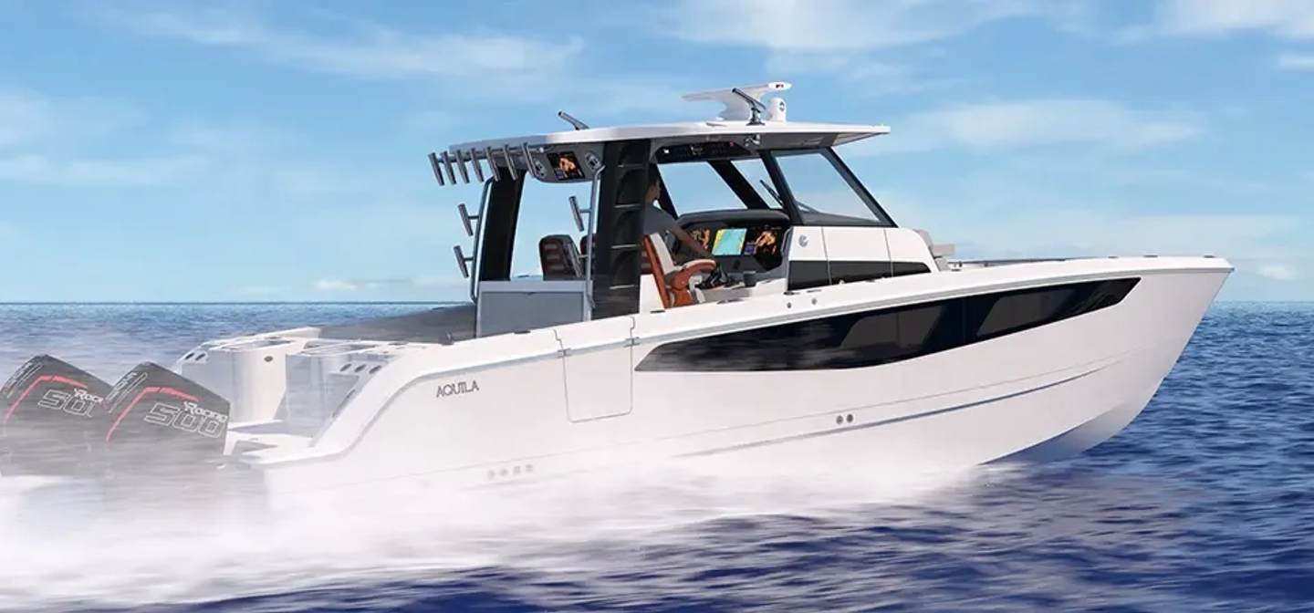 Inside the console, the cabin sleeps two with a private head; hull-side windows and a pantograph door make it an easy retreat when the sun’s high. Helm seating for three, joystick options, and that carbon roof pre-rigged for towers and outriggers round out the package. Standard power is twin Mercury V8 300s with V10 400/425 upgrades available. Buyers exploring an Aquila 36 Molokai yacht for sale will find a tough, quick-to-use platform that fishes hard, carries up to 16 people, and still feels welcoming for family days.