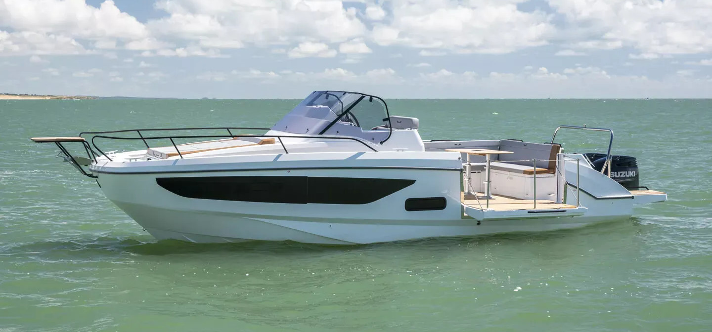 The Flyer 9 S is built in France by Beneteau with a multi-award winning in-house design team. The 9.1m/29'10" sportsboat can sleep up to four guests its cabin. Currently, available with a range of outboard engine options.