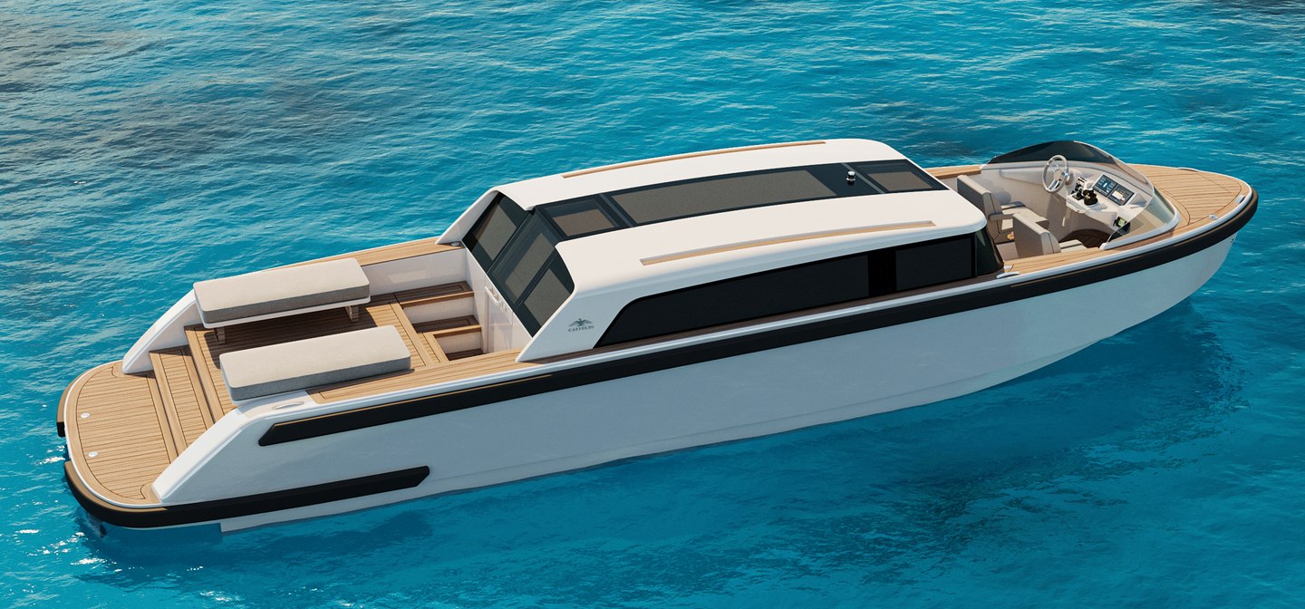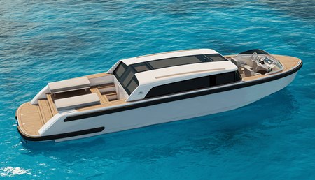 For storage fitment in a tender garage or for onboard yacht placement the Castoldi Jet34 Limo is 10.5m in length and has a maximum width of 2.8m. For the yacht's maximum lifting load capacity it has a dry weight of 5,800kg (excluding engines).