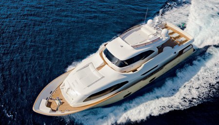 This 26 metre, semi-displacement yacht features yet further extension of space, so those on-board can enjoy life on the yacht at its best. The sundeck joins with the spacious lounge area astern, extended at bow with a walkaround. The upper deck relaxation area has also been extended, to the advantage of the living area. The main deck houses the master cabin, featuring large windows overlooking the sea as do the lower bridge guest cabins. Painstaking care has been taken over the finishes of the interiors, too, completely re-examined in order to guarantee a style which is both elegant and contemporary at once, and which can be personalised according to the owner’s choices.
