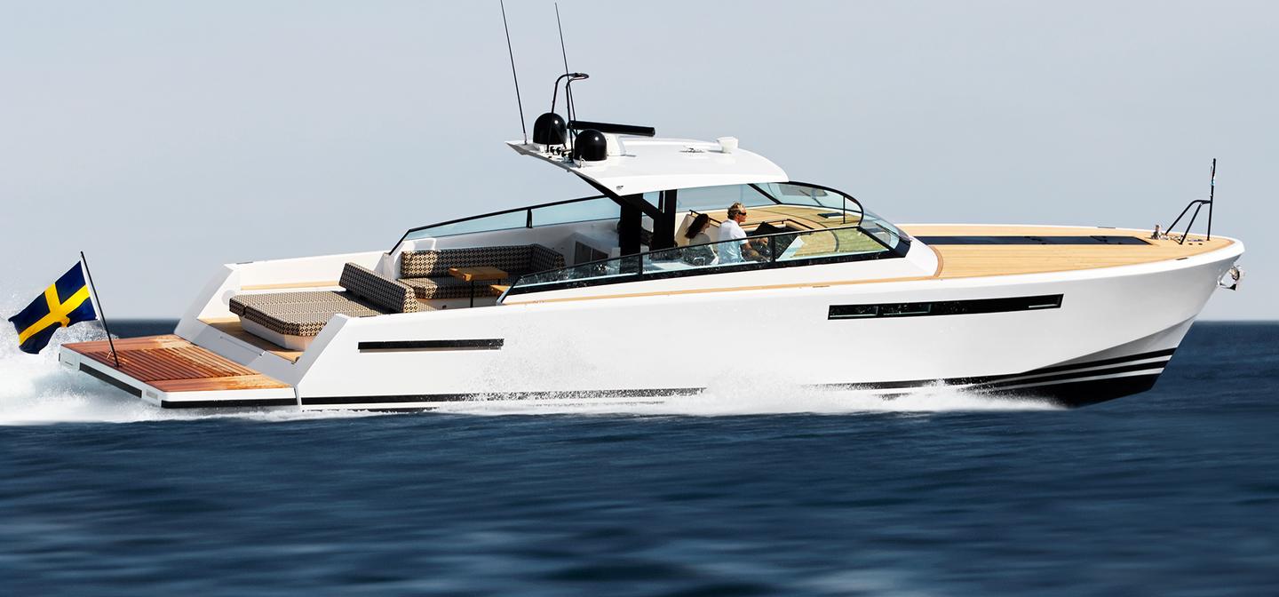 The Delta 60 takes day boating to the next level, balancing high performance and unequaled efficency with luxurious onboard living spaces. Her sociable cockpit arrangement includes multiple sun bathing areas and seating for up to twenty guests. The aft section seamlessly extends out with the bathing platform, providing an accessible link to the sea and facilitates boarding, swimming, deploying of toys and water sports activities. The mirrored L-shaped sofas on both sides are ideal for guests to relax in and enjoy an al fresco meal served from the cockpit galley modules including BBQ-cooker, fridge/freezers, ice maker and dishwasher. Below deck, the interior is tailored to the buyer’s specifications with the master cabin positioned forward along with two amidship guest cabins, or optionally one guest cabin along with a belowdeck lounge and galley.