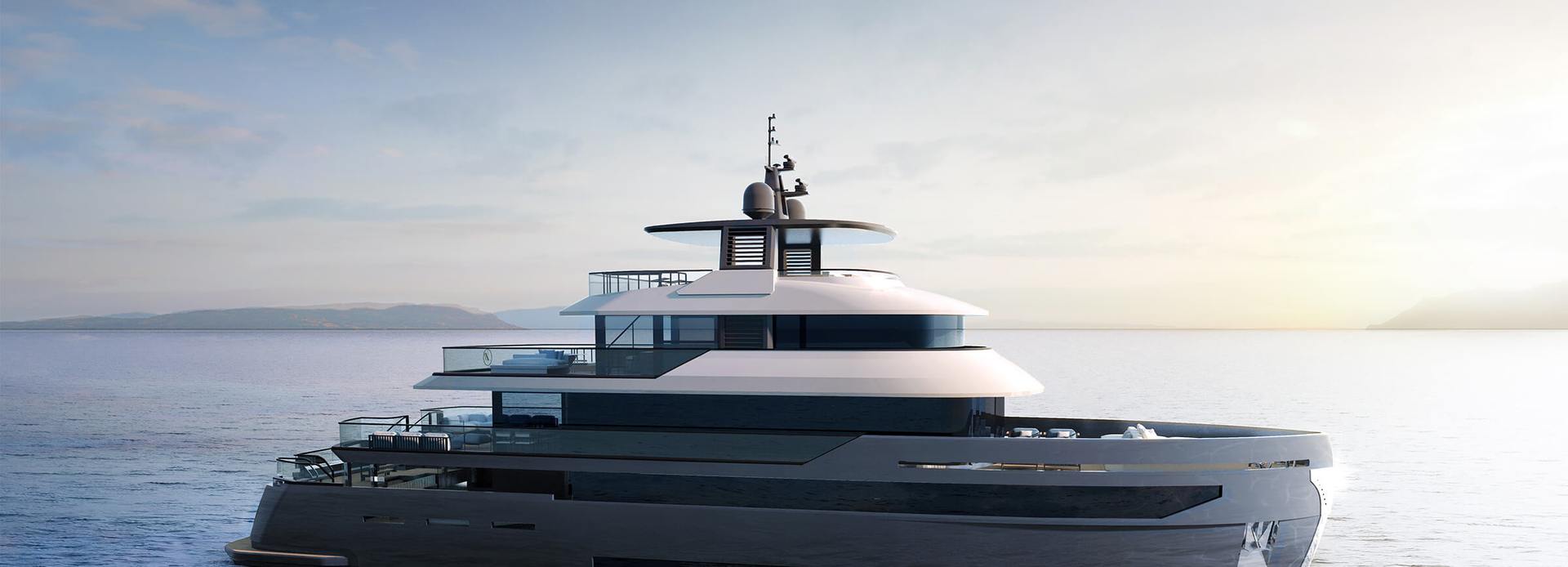 Designed around a displacement steel hull and an aluminium superstructure she features a 8.6m beam and a 2.5m draft. The yacht has an internal volume of 398 GT (Gross Tonnes).