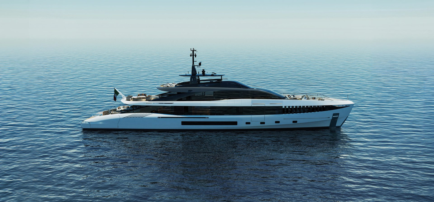 The GranSport 50 is built by Mangusta with a multi-award winning international design team, interior and exterior styling by Alberto Mancini from France. The 49.9m/163'9" superyacht can sleep up to twelve guests across five cabins. Available with only one option for inboard engines.