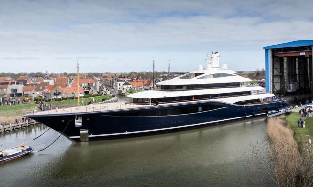 The 50m Project 717, now known as Graycliffs, was in the news twice - first at her January launch from Aalsmeer, then again in February as she was photographed moving through Dutch canals ahead of sea trials and her scheduled 2026 delivery. Also progressing is the secretive 72m Feadship Project 719, first seen publicly in March as her bare hull departed Papendrecht for Aalsmeer, giving the first real glimpse of a yacht not due for completion until 2028.