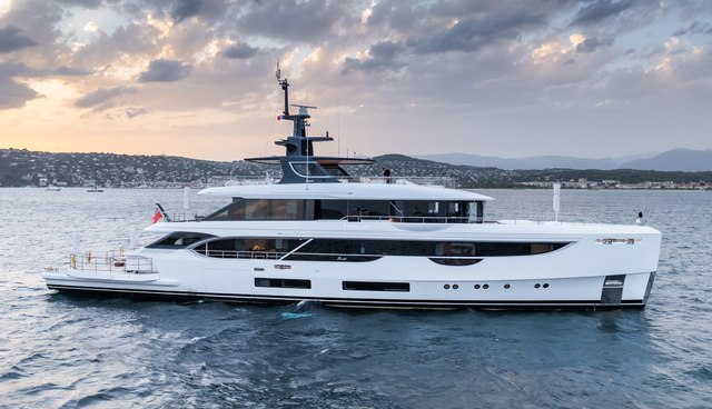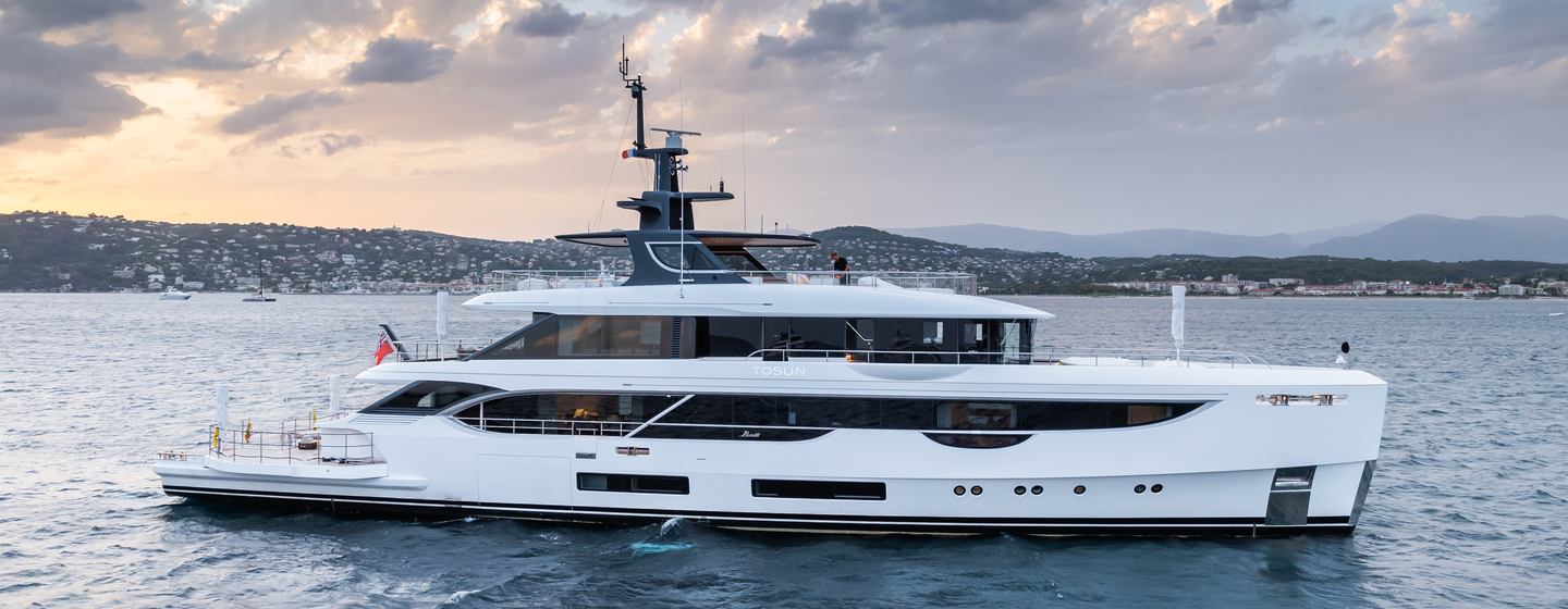 Delivered in 2022, Tosun is the eighth hull of the Benetti Oasis 40M series. She was designed by RWD with interiors by New York studio Bonetti/Kozerski Architecture and naval architecture by the in-house team at Benetti.