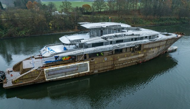 The 80m Abeking & Rasmussen superyacht Abeking 6516 has been seen on the Kiel Canal for the first time as she prepares for outfitting.