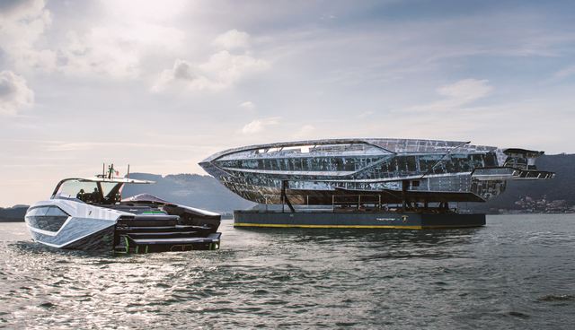 Automobili Lamborghini Centro Stile shaped the yacht’s lines, taking cues from the new few-off Lamborghini Fenomeno. The hull and superstructure are built in aluminium and carbon fiber, creating a sharp and aerodynamic profile with an expressive character.