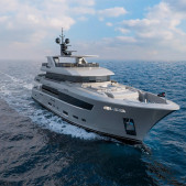 On the explorer front, Juanky makes her global debut as the first hull in new Cheoy Lee 130 Explorer line. Measuring 40 meters in length and built from steel, she’s designed by Overing Yacht Designs with interiors by Sylvia Bolton. The Cheoy Lee yacht’s 4,000-nautical-mile range and rugged styling are balanced by relaxed social spaces, including a sky lounge cocktail bar, foredeck Jacuzzi, and sheltered flybridge dining area.
