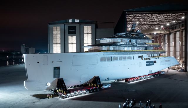 With her steel hull and aluminum superstructure assembled and pre-outfitted, the move of the Oceanco yacht marks a key milestone as the project advances toward launch, sea trials, and scheduled delivery in 2027.