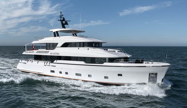 Powered by twin Caterpillar C-32 diesel engines producing a combined 3,850 horsepower, Ad Astra reaches a top speed of 17 knots and cruises comfortably at 14 knots. Her 35,000-liter fuel capacity delivers a range of 4,000 nautical miles at 10 knots, offering long-range autonomy suited to global cruising.