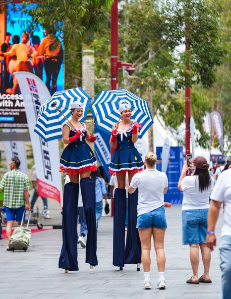 The main entrance is positioned along the Darling Harbour foreshore, with clear signage guiding visitors to the marina and festival areas. The site is designed to be accessible, with step-free routes, wheelchair-friendly pontoons, parent facilities, and public restrooms located throughout the showgrounds.