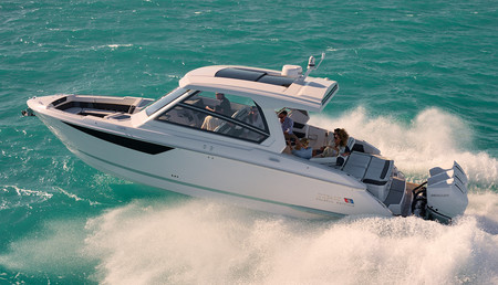 The R35 OB Coupé is built in the United States by Cobalt Boats making full use of their in-house design team's expertise. The 10.77m/35'4" coupe boat can sleep up to two guests in a single cabin. Currently, available with a range of outboard engine options.