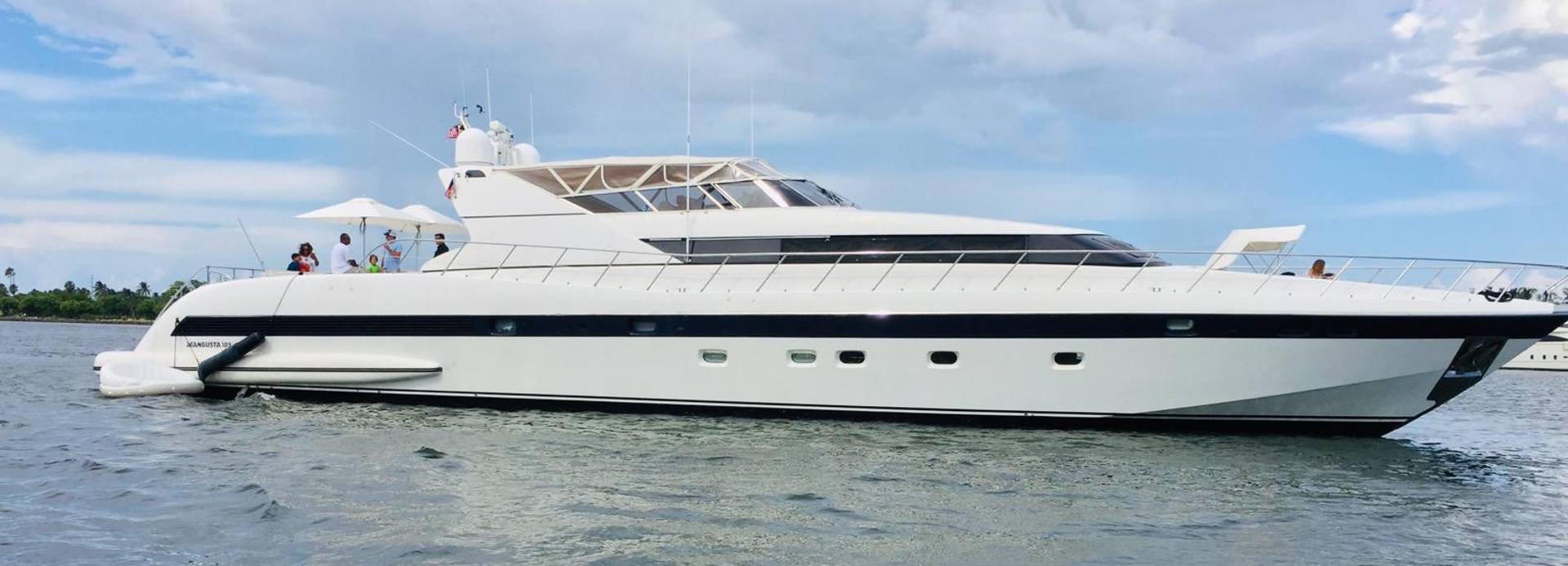 This was the fourth yacht built on the Mangusta 105 design.