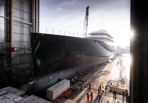 Designed around a displacement steel hull and an aluminium superstructure she features a 16.8m beam and a 4m draft. The yacht has an internal volume of 5,054 GT (Gross Tonnes).