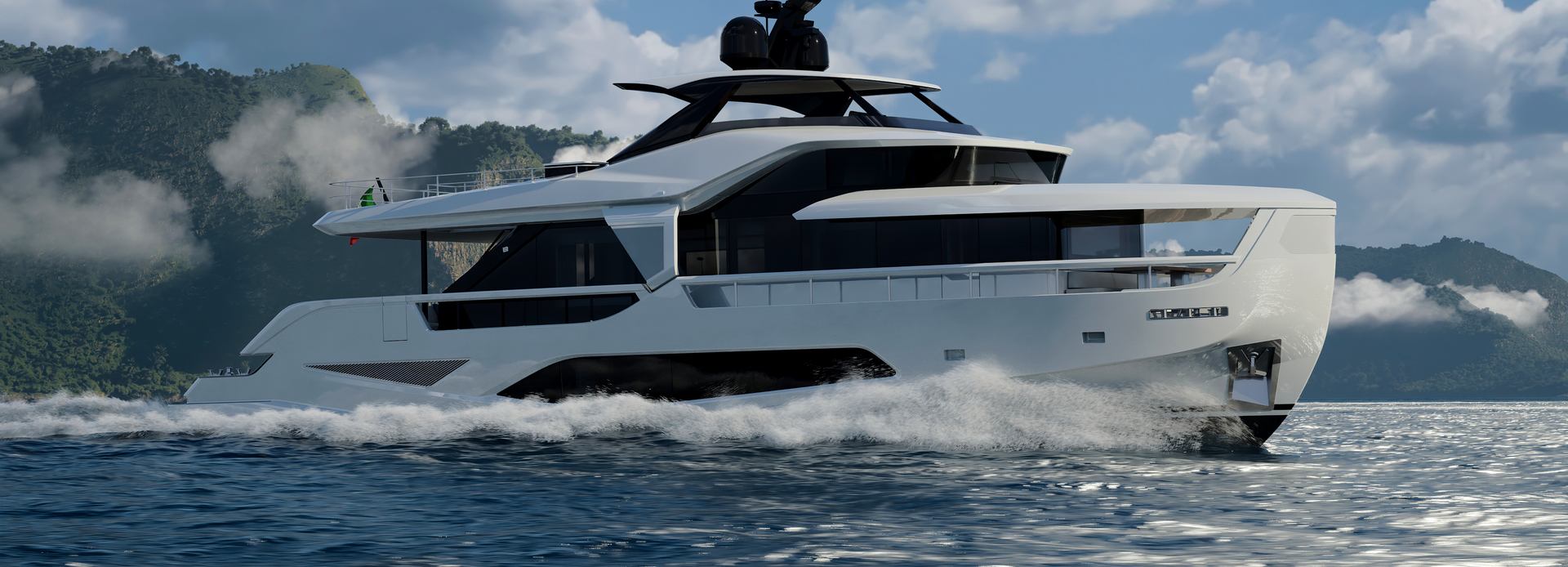 Trilogy is a 77'9" motor yacht due to be delivered by Italian shipyard Ferretti Yachts in 2025. The yacht's elegant exterior design is by Filippo Salvetti, while her interiors are the work of Ideaeitalia.