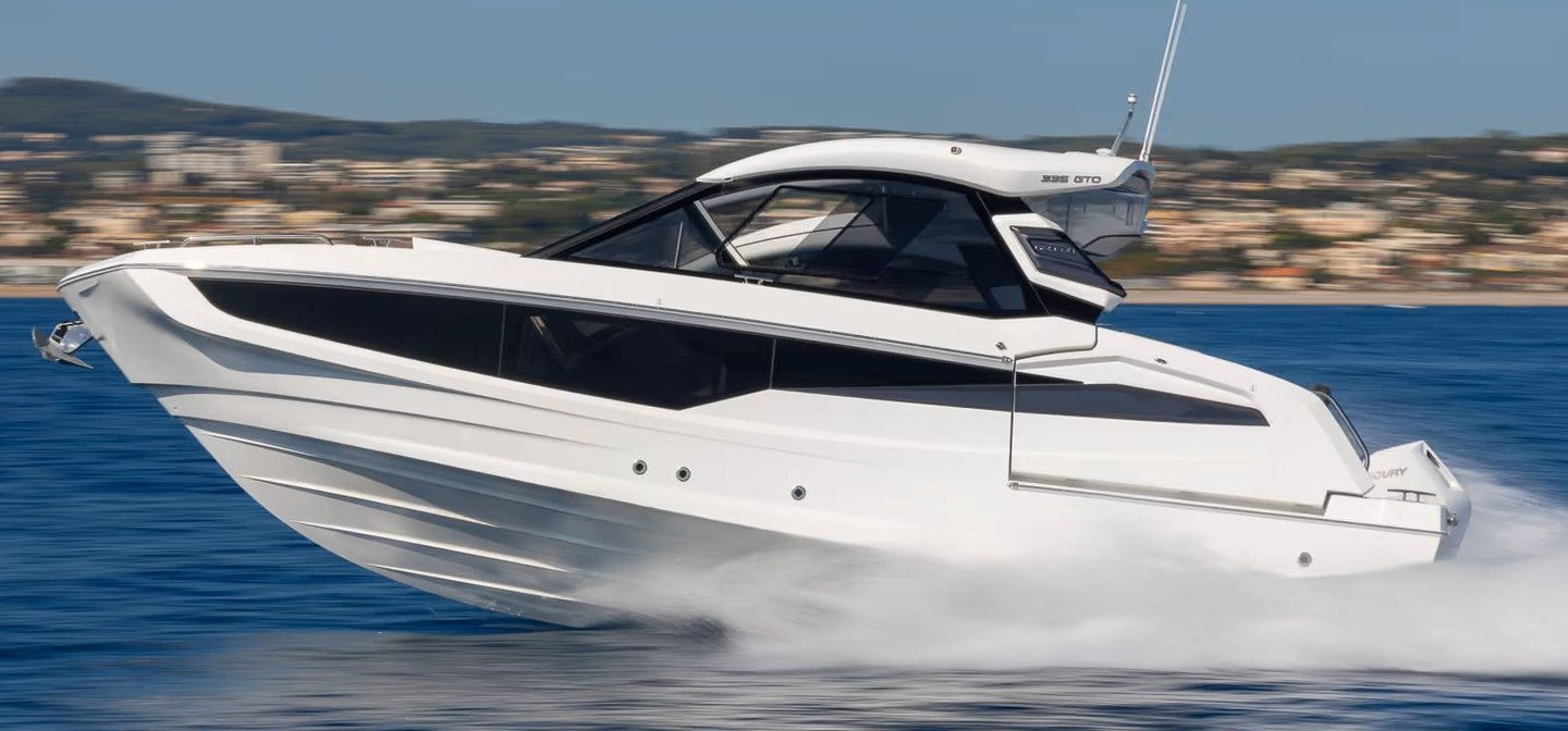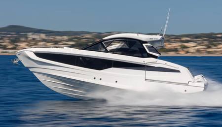 The 335 GTO is the entry-level sports cruiser boat from Galeon's GTO range. This planing yacht is constructed from fibreglass and can deliver speeds in excess of 36 knots.