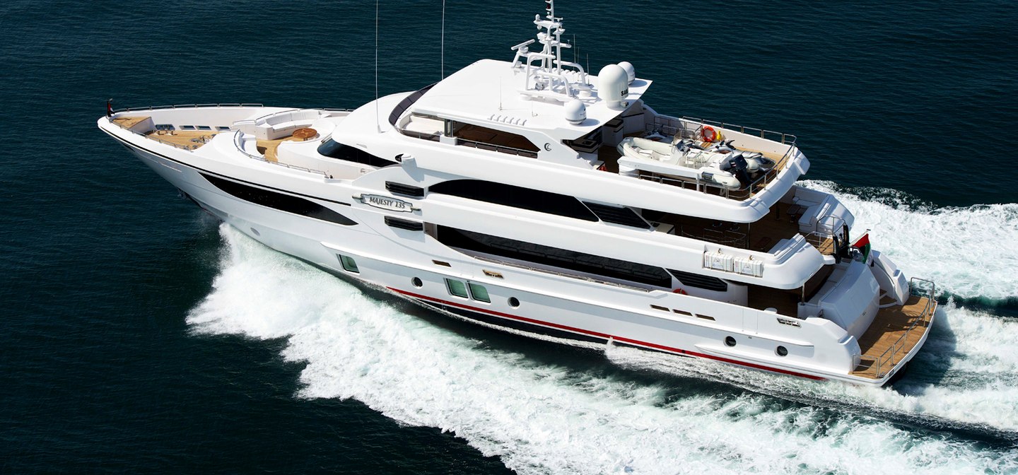 The award winning Majesty 135 is the flagship of Gulf Craft's Majesty Yachts range. This semi-displacement yacht is constructed from GRP and can deliver speeds in excess of 23 knots.