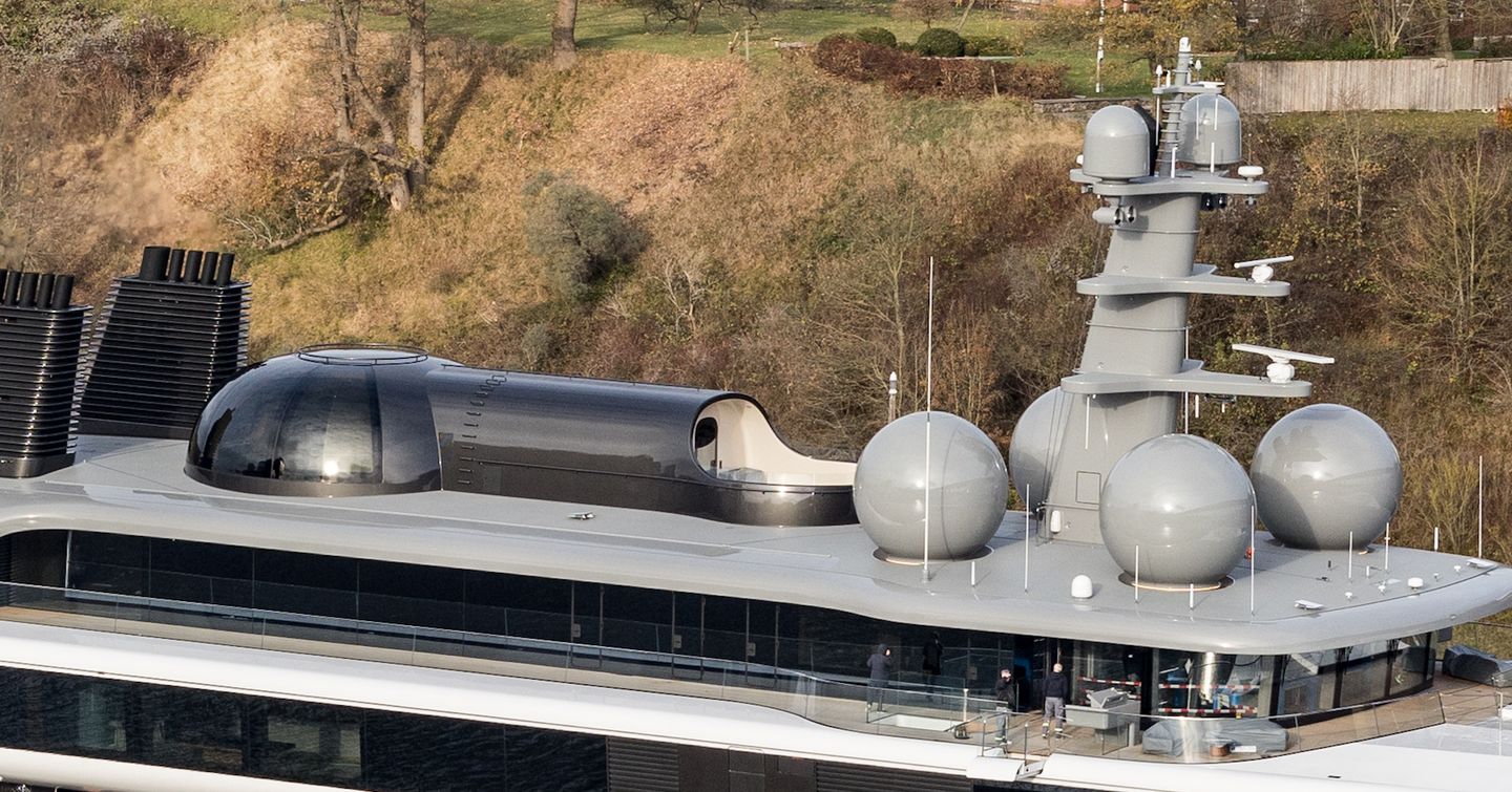 Newson’s exterior introduces a profile shaped around large, uninterrupted glass surfaces and an explorer-leaning stance. The most recognisable feature is a glass-domed owner’s study positioned high on the superstructure and linked to a private sky terrace. Lürssen developed a bespoke process to bend thick glass sections with optical precision, producing a clear, continuous 360-degree panorama.