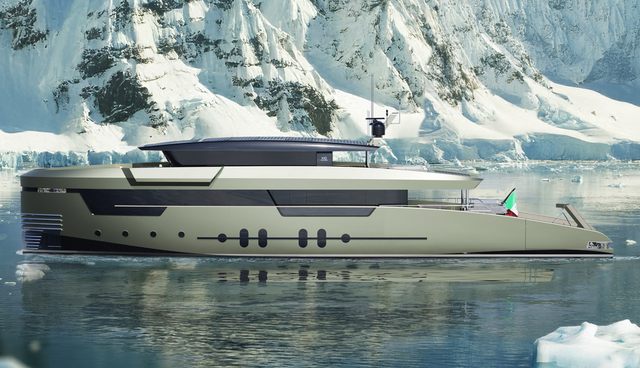 Conceived for long-range adventure cruising, the project pairs an aluminum hull with hybrid propulsion and flexible interior layouts developed with designer Marco Casali.