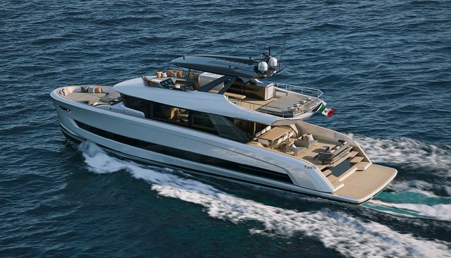 Rendering of Bluegame BGX83 boat under way