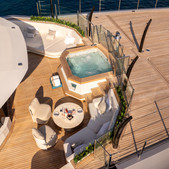 Bilgin’s 80-meter Al Reem is the final and most advanced yacht in the Bilgin 263 series, designed with extended decks that add nearly 20 percent more outdoor space. Highlights include a waterfall spa pool, a touch-and-go helipad, and an interior by H2 Yacht Design styled in calm, contemporary tones.