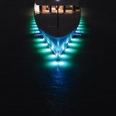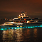The 111-meter Leviathan by Oceanco was expected to make an equally dramatic impression, with a profile that glows neon after dark and a tri-fold beach club opening onto the water. Inside, Mark Berryman Design created a contemporary layout that even features a full-height glass staircase etched with the names of more than 2,000 people who worked on the build.