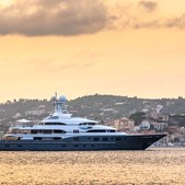 The 74m Amels yacht Casino Royale brings a different kind of Palm Beach debut - one rooted in proven platform design and easy charter-style appeal. Built on the Amels 242 platform, she features Tim Heywood exterior styling and interiors by Winch Design. Her sand-colored hull gives her a softer visual identity than many yachts in this size range, while features such as a 6.5m infinity pool, spa and wellness area, dance floor, elevator, and full owner’s deck underline her guest-focused setup. With a 5,000nm range and strong Dutch build credentials, Casino Royale remains an appealing entry for buyers drawn to established quality and practical long-range cruising.