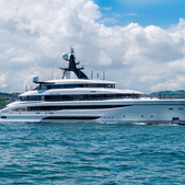 Fresh from a 2024 refit, the 78m Lurssen yacht Rocinante brings proven pedigree to Palm Beach. Designed outside and in naval terms by Espen Oeino, with interiors by Alberto Pinto, she brings serious long-range capability with an unusually rich leisure brief. A certified helideck with refueling station, a full diving center, elevator, spa, gym, and multiple pool and Jacuzzi areas give her broad appeal as a global cruising platform. Her light blue hull still stands out, while the owner’s suite with private terrace and Jacuzzi adds another layer of privacy. For buyers seeking a substantial pedigree yacht, Rocinante is one to watch.