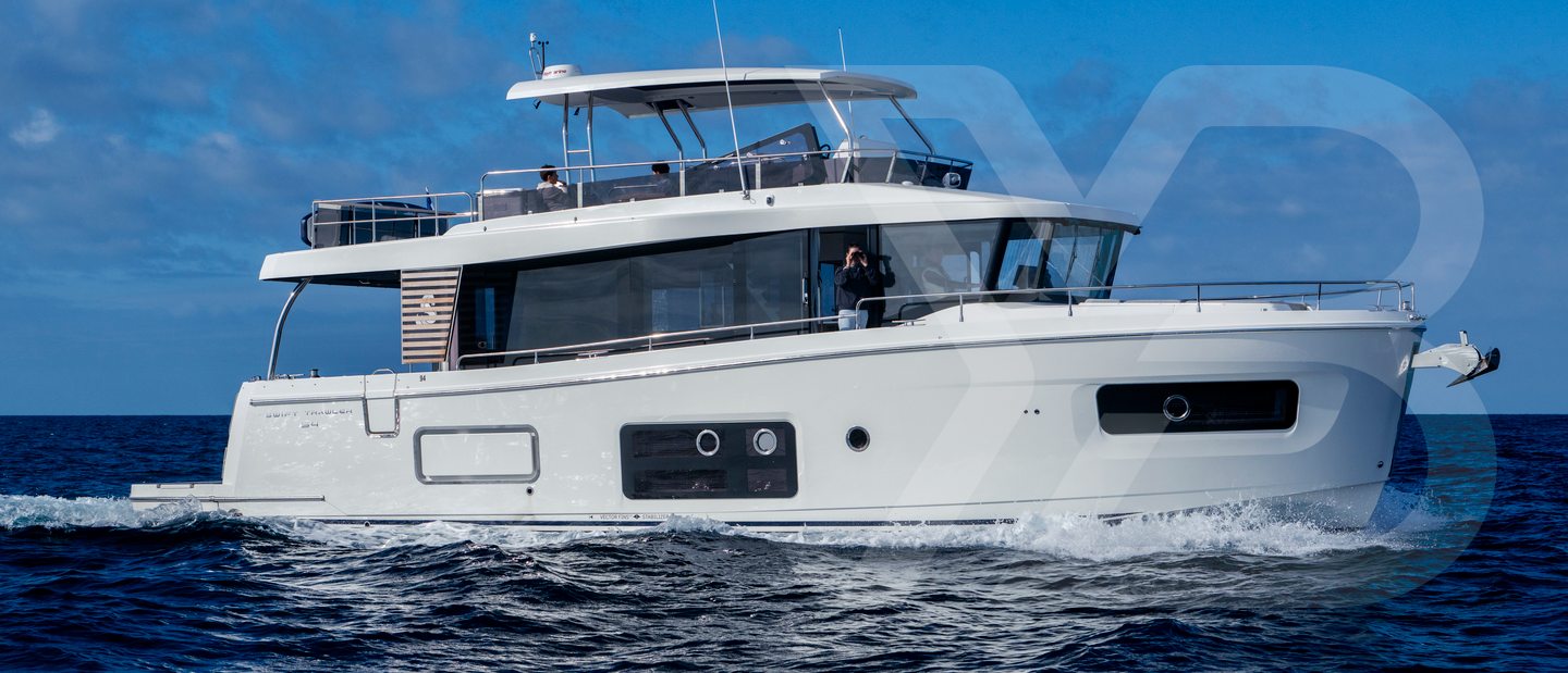 The Absolute Navetta 53 occupies a middle ground, offering more range and efficiency than the Prestige but still far less than the Swift Trawler. Its three-cabin layout (full-beam master amidships, VIP forward, twin guest with an optional crew cabin) covers six guests, and the interior finish is more refined than the Beneteau. Twin Volvo IPS650s give 24-25 knots flat out and 18 knots at around 133 L/h, which means only a few hours of running at that speed before refuelling. Pulling back to 10 knots extends range to 400-475 nm, still well short of the ST54’s displacement cruise endurance. The IPS drives make handling easy, but the hull form and fuel capacity are better suited to coastal passages than true long-distance voyaging. Features like modular cockpit furniture, an aft galley, expansive saloon glazing and optional solar give it strong lifestyle appeal, though it lacks some of the outright technical aspects of the trawler.
