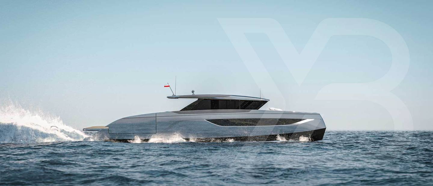 Each hull carries a Volvo IPS pod drive, and the hull geometry has been optimised around that propulsion. The positioning of the pods, their angle, and the overall draft have all been considered to minimise disruption and maximise efficiency. With the foils assisting at speed and the pods delivering vectored thrust, the boat moves cleanly and holds course well without trim tabs or active stabilisation. The hulls themselves contribute to that inherent stability – they’re wide apart and narrow in section, giving both balance and grip.