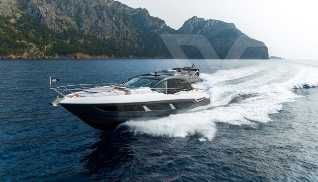 This includes most of the cost options you'd want to create a 'turn-key' package, such as the larger 1,900hp engines, tropical air-conditioning, passerelle, bow and sternthrusters, upgraded navigation package, Performance AV package, twin generators (27kw & 11kw), and Sleipner fin stabilisers.