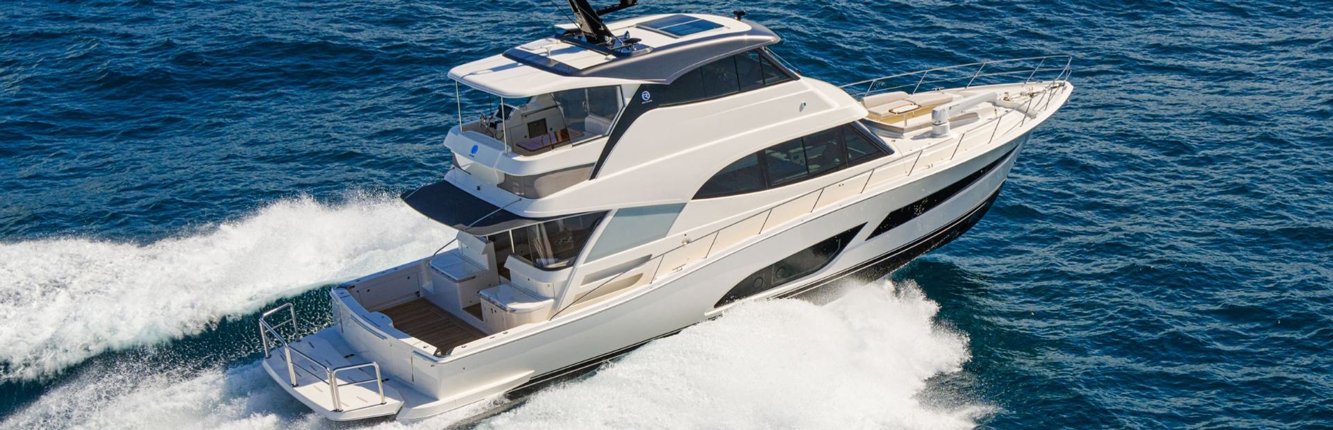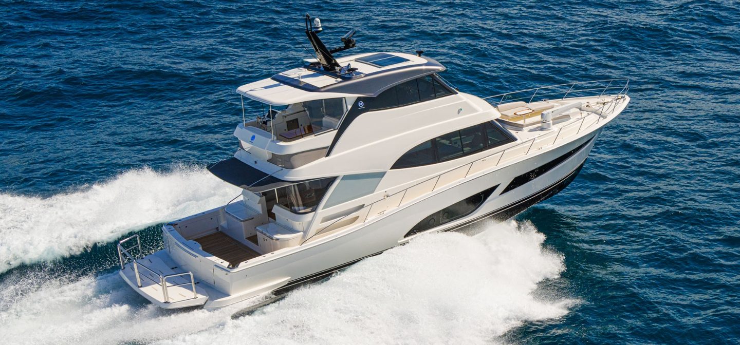First launched in 2020, Riviera’s 64 Sports Motor Yacht set the benchmark for a 64-foot blue-water yacht that has it all; walk-around side decks, foredeck lounge and entertaining, all-weather alfresco deck, luxurious saloon with internal staircase to a fully enclosed air-conditioned flybridge and state-of-the-art helm. Magnificent accommodation included a choice of three or four staterooms, three bathrooms, an opulent full-beam master suite and versatile utility room or crew cabin. Engineering excellence matched her sports performance to ensure a smooth, quiet and efficient ride across varying speeds and a range of offshore conditions. And of course, a wide, open cockpit to allow enjoyment of all manner of water sports.