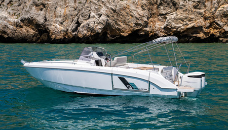 The Flyer 9 SPACEdeck is built by Beneteau. The 9.1m/29'10" GRP vessel can sleep up to four guests in a single cabin.