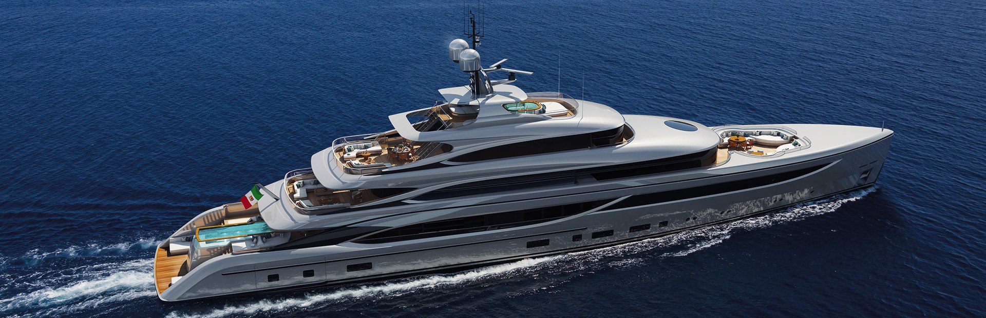 Echo-friendly navigation with four cruising modes: Enhanced Comfort Mode - Ideal for low-speed coastal or night cruising, the main benefit of this mode is the exceptional comfort it offers. The diesel engines are switched off, but their gensets continue to supply energy to the electric motors. Extended Range Mode - Ideal for low-speed coastal or night cruising, the main benefit of this mode is the exceptional comfort it offers. The diesel engines are switched off, but their gensets continue to supply energy to the electric motors. Eco Transfer Mode - Both diesel generators are switched off and only one propulsion engine runs, enabling the yacht to halve the running hours of the main engines and gensets. As a result, fuel consumption and CO2 emissions can be reduced by up to 16% and NOx emissions by up to 80% compared with traditional propulsion systems. Eco Cruise Mode - Most suited to short trips along the coast, this zero-emission mode allows entry to protected marine areas or zones usually designated as off-limits to motor yacht, with the range depending on the capacity of the battery pack.