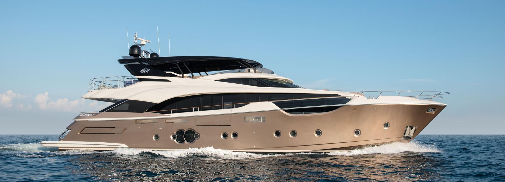 The 29.26m motor yacht GV was delivered to her owners in 2017 by Italian shipyard Monte Carlo Yachts. Her interior design and exterior styling comes from the drawing boards of Nuvolari Lenard, while Monte Carlo Yachts is responsible for her naval architecture.