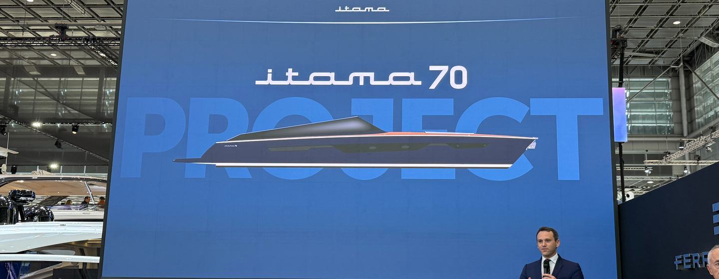 Aerial view of new Itama 70 boat during press conference at boot Dusseldorf 2026