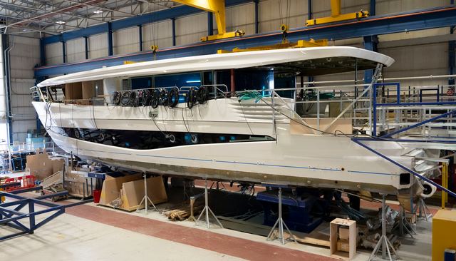 The first Princess X90 has now reached a key construction milestone, with the deck, canopy, and hardtop structures successfully installed - this step opens full access for the next phase of fit-out, which is already well underway. Three X90's are currently in build, with a fourth hull set to enter production shortly