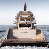 At 101 metres, Moonrise is one of the largest yachts expected in St Barts this season. Built by Dutch shipyard Feadship, she is a full custom design featuring clean modern lines, expansive exterior decks and a highly refined interior by Rémi Tessier. With significant volume and a strong focus on privacy and entertainment, Moonrise represents Feadship’s continued leadership in the ultra large yacht sector.