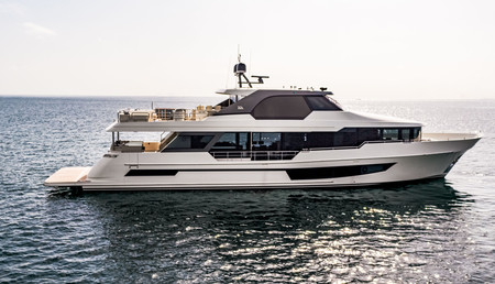 First announced to the press in 2020 she swiftly went into development and the first model rolled off the production line later the same year. She was unveiled to the general public at the 2020 Fort Lauderdale International Boat Show (FLIBS) where she made her World Debut and made her American Debut at the Fort Lauderdale International Boat Show in 2020.