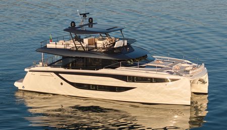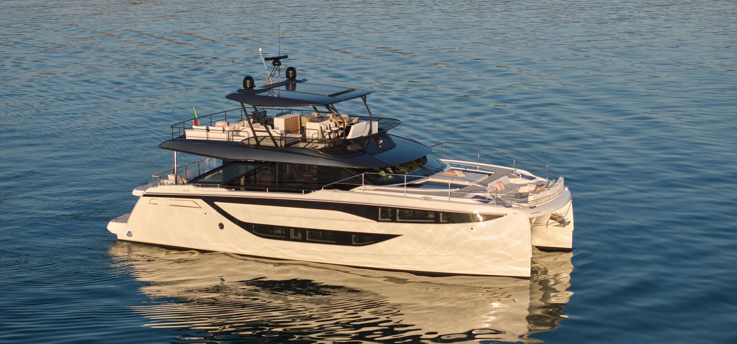 The M8 Evo is a catamaran boat from French builder Prestige. Constructed from GRP, the M8 Evo has a hull design.