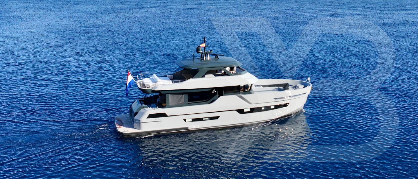 The Fleming 85 takes a more traditional route into this territory. Layouts usually give you three or four guest cabins, all ensuite, with the owner cabin running full-beam amidships and crew tucked aft. It’s a comfortable six-guest boat in standard form, though a fourth cabin can push that higher. Performance is semi-displacement - twin MAN V12s around 1,550hp each deliver a top end close to 25 knots, but ease it back to displacement pace and she’ll cover about 3,500nm on 12,000 litres of fuel. You can have an open or enclosed flybridge, insulation is strong with double glazing, and the fit-out carries a level of refinement that appeals to long-range cruisers who still want a touch of formality in the way the boat feels.