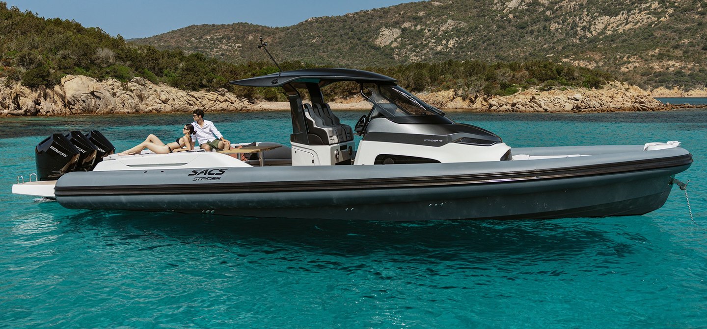 The New Strider 13 is an icon of design and innovation, ideal for those who experience the sea as a continuous adventure. With its sleek profile and spacious deck, it's the perfect companion for a limitless experience. Escape the ordinary with the new Strider 13. The fruit of over 30 years of boatbuilding experience, the Strider 13 is a true icon. Crafted with passion and precision, it represents the pinnacle of innovation and design, the ideal companion for those who experience the sea as a constant adventure. Designed to excite the passion for sailing, it is an invitation to limitless exploration. The Strider 13's dynamic design combines sleek profiles with a modern, eye-catching look, while its well-designed geometry conveys robustness and safety. Particular attention has been paid to the choice of materials and finishes, with premium leathers and hand-stitched stitching. Innovative, agile, and sporty, yet comfortable and safe. The Strider 13 offers a new sailing experience that combines high performance and comfort thanks to a design that accommodates both speed and relaxation on board.