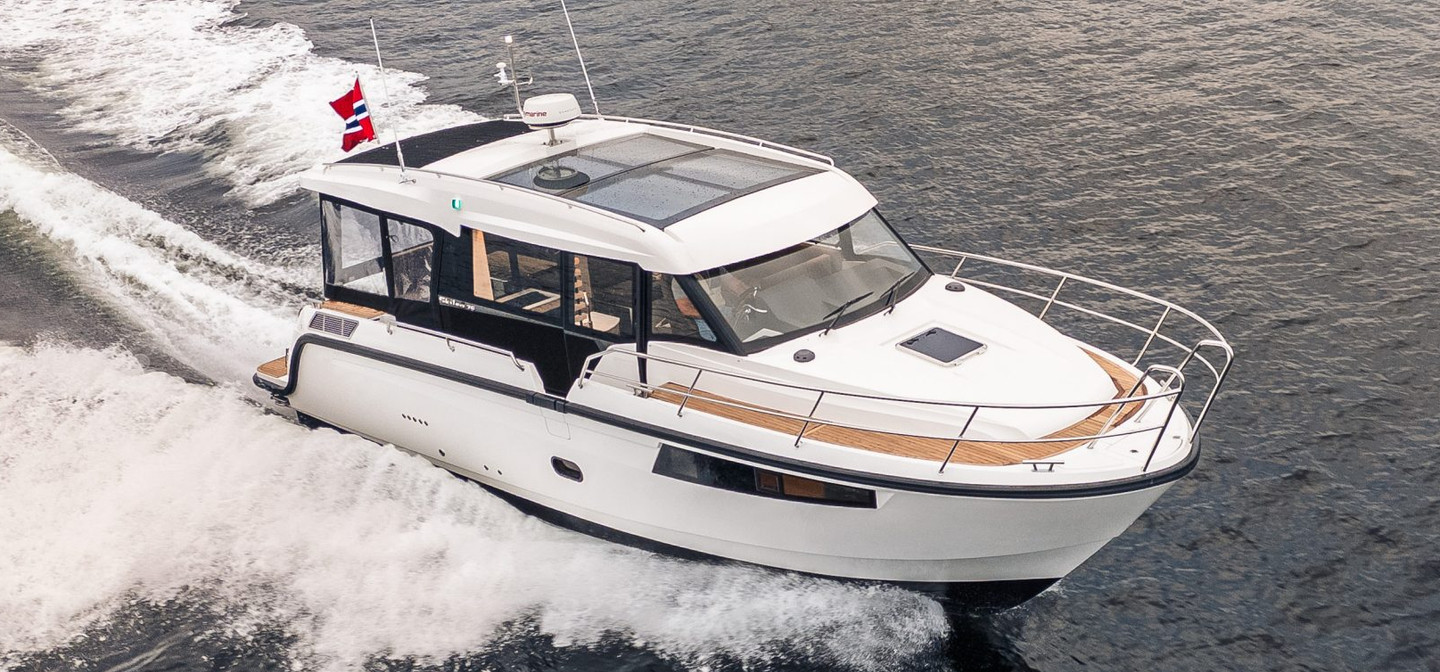 The S35 Panorama is built in Norway by Viknes with a award winning in-house design team. The 10.6m/34'9" cruiser boat built from GRP can sleep up to five guests across three cabins. Currently, available with a range of inboard engine options.
